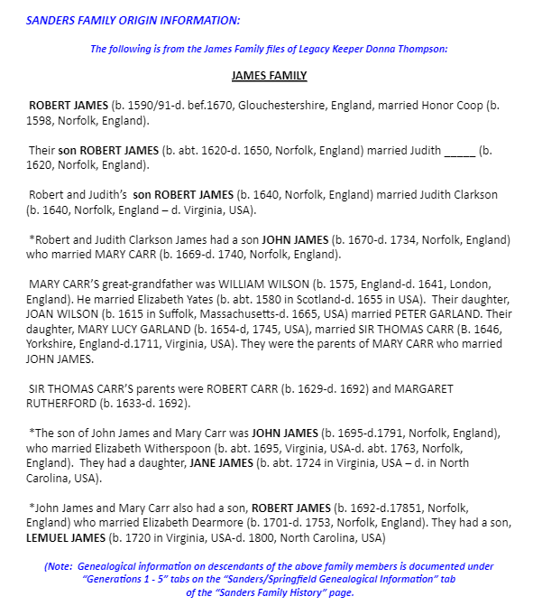 Sanders/Springfield Family Origins