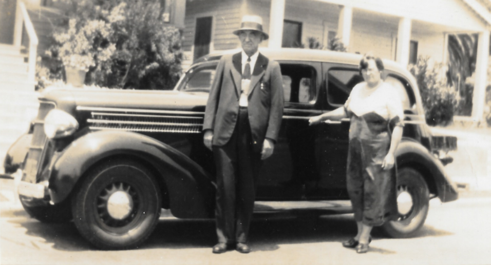 Winston and Maggie Cunningham with their car.